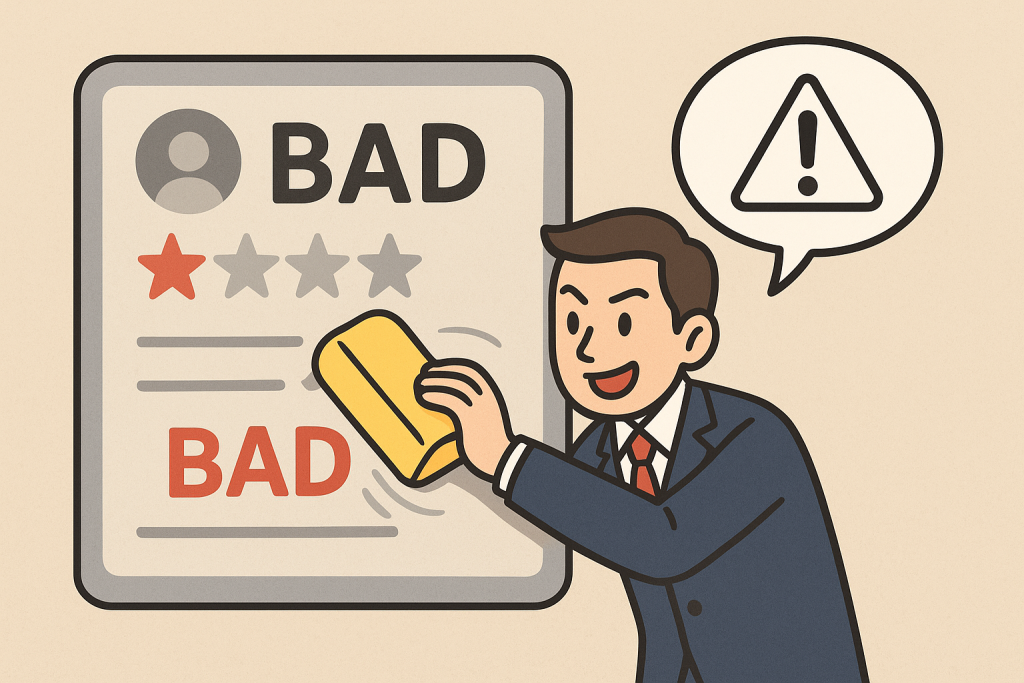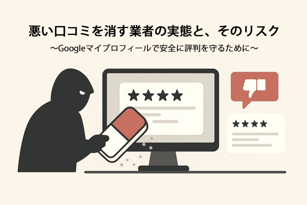 悪い口コミを消す業者の実態と、そのリスク〜Googleマイプロフィールで安全に評判を守るために〜