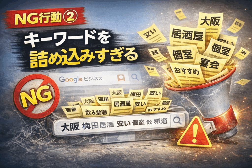 誤った方法やNG行動を続けてしまうと、どれだけ時間をかけても効果が出ない、あるいは順位が下がってしまうこともあります。